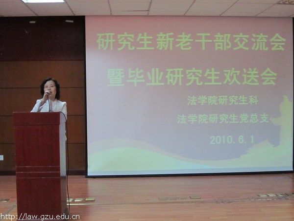 6月1日下午,我院研究生科、研究生党总支在模拟法庭举办了研究生新老干部交流会暨毕业研究生欢送会。研究生科科长、研究生党总支书记彭娜老师、研究生党总支委员李丽老师、教学科研科陆万莲老师、诉讼法教研室穆昌亮老师出席了交流会。07届毕业研究生干部代表、全院研究生干部参加了会议。