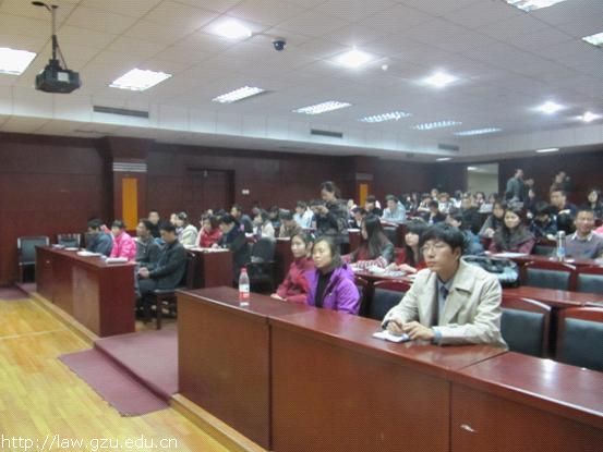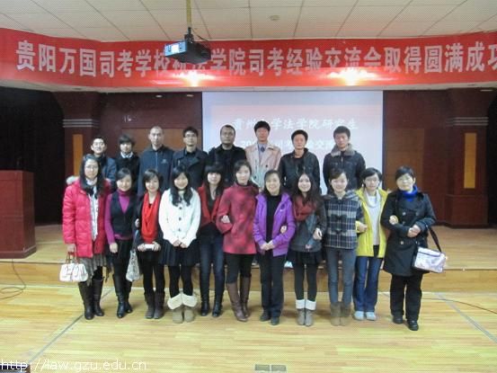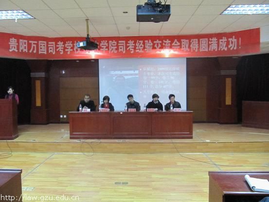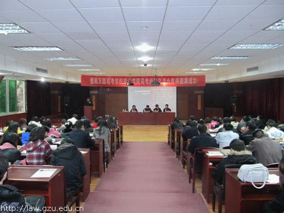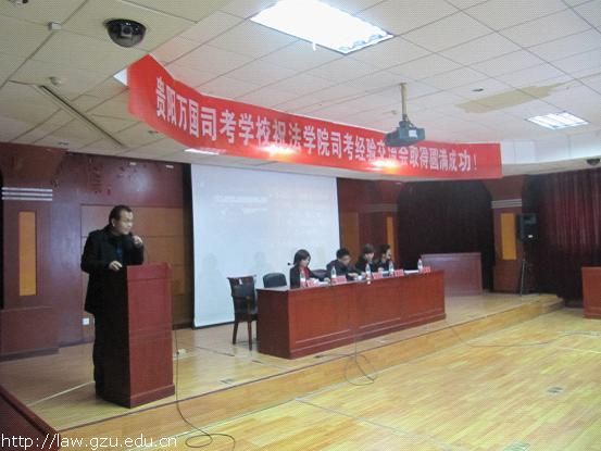 12月6日下午14:30,由我院研究生会举办的司法考试经验交流会在贵州大学北校区模拟法庭顺利召开。我院研究生党总支书记、研究生科科长彭娜老师,研究生党总支委员、研究生科副科长李丽老师,贵阳万国司考培训机构的校长任思荣以及学院2009级、2010级研究生参加了本次交流会。