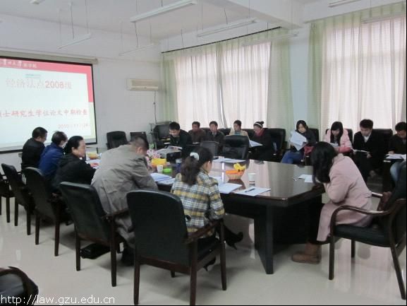 2010年11月24日上午8点30分,08级经济法研究生在我院会议室举行了毕业论文预答辩会,翦继志教授、钟佳萍教授、张林鸿教授、徐晓光教授、黄蓓副教授等老师,以及08级经济法全体研究生参加了此次答辩会。