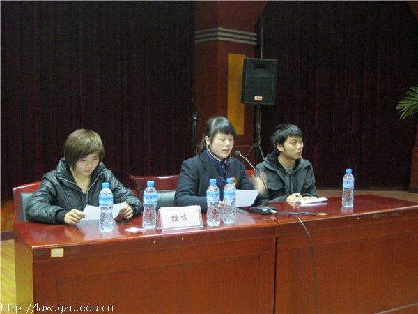 2010年12月9日晚19:00点整,金沙集团1862cc成色第一届“典正杯”法律文书大赛决赛在模拟法庭正式拉开帷幕。贵阳电视台法制频道对本次决赛进行了现场采访。