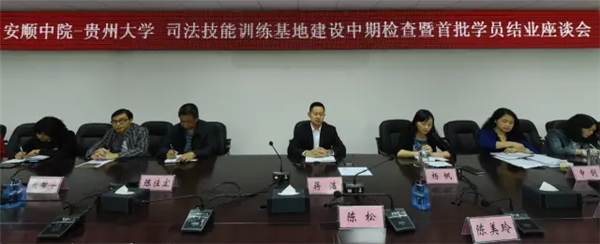 6月27日,贵州大学法律硕士研究生司法技能训练基地(安顺中院)建设中期检查暨首批学员结业座谈会在安顺市中级人民法院召开,安顺中院党组书记、院长蒋浩,党组成员、政治部主任杨帆,贵州大学法律硕士教育中心副主任陈松、安顺中院实践导师、贵州大学在安顺中院首批学员及2017年新进学员参加了会议。