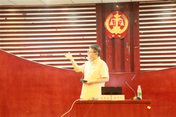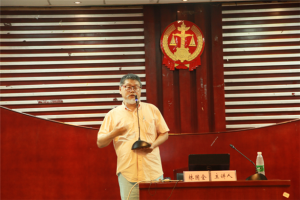 2017年7月2日晚19:00,“台湾金融消费者保护法评析”讲座在贵州大学北校区模拟法庭举行。主讲人是政治大学法学院院长林国全教授,主持人为金沙集团1862cc成色副院长宁立标教授。同时,我院的百余位研究生、本科生到场聆听。