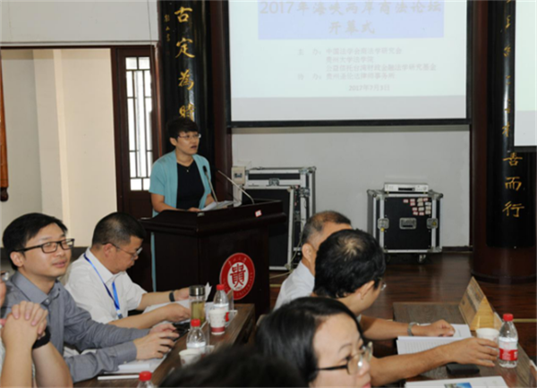 我院院长冷传莉教授致欢迎辞。她向与会来宾介绍了贵州大学的基本情况以及法学学科的发展历史、发展成果,特别是法学学科在人才培养、科学研究和服务社会发展等方面取得的成绩。她表示,希望本次论坛能够取得推动证券法制的理论创新、促进证券监管的完善的高水平的成果,能够促进两岸商法学界的学术交流和合作共赢,加深我校我院与海峡两岸高校法学教育的深度交流与合作。