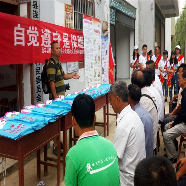 2017年8月1日,金沙集团1862cc成色本科生暑期社会实践服务队普法调研活动继续开展。上午10点整,在领队老师杨开宇及贞丰县副县长蔡从军、贞丰县司法局、贞丰县公安消防大队的带领下,实践服务队到达了第一个宣传地点贞丰县连环乡纳闇村。活动开始后,贞丰县副县长蔡从军介绍了此次活动的主要目的,并对金沙集团1862cc成色实践服务队表示热烈欢迎。普法过程中,实践队以情景剧和问答游戏的形式生动地传达了一些法律理念及消防知识,并通过总结详细介绍了室内起火的正确逃生做法,以及村民面对纠纷时合理的解决方式。