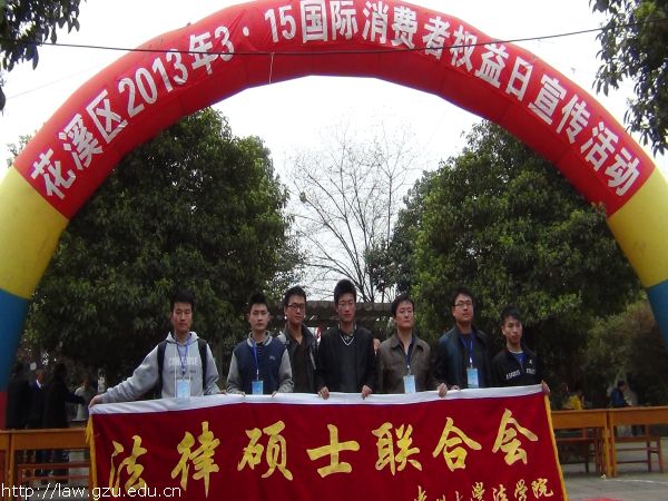 2012年3月17日早上九点整,为有效维护消费者合法权益,切实增强消费者自我保护意识和能力,花溪区工商局和我院联合举办的“3•15消费者权益日”活动在花溪公园正门口成功召开。活动开展了法律法规宣传、消费咨询、展示假冒伪劣商品、教授辨假识假知识等活动,受到广大消费者的欢迎。参加本次活动的有花溪区工商管理局的工作人员,我院的带队老师、法硕联合会的研究生以及本科生代表。