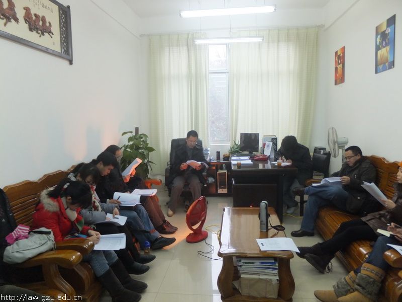 2011年12月30日,诉讼法学硕士点2010级研究生开题报告会在我院余贵忠副院长办公室顺利举行。余贵忠教授、李卫国教授、穆昌亮教授及2010级诉讼法学硕士点全体研究生参加了报告会。