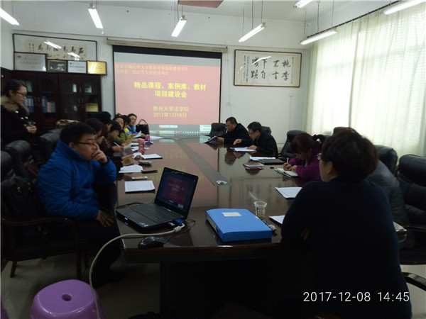 为切实做好国家卓越法律人才教育培养基地建设以及贵州省法学一流专业建设,我院于2017年12月8日在会议室召开了精品课程建设、案例库以及教材项目建设会。本次会议由冷传莉院长主持,我院副院长宁立标、教学科研科科长陆万莲以及田莉姝老师、方印老师等共十三人出席了本次会议。