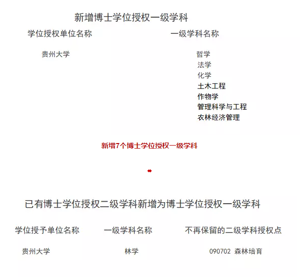 近日,国务院学位委员会公布2017年审核增列的博士、硕士学位授权点名单,贵州大学法学专业位列其中。此次新增名单,贵州大学共获7个一级学科博士点,1个已有博士学位授权的二级学科新增为博士学位授权一级学科。
