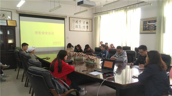 4月27日上午12:30,金沙集团1862cc成色在北校区逸夫楼会议室召开了学生安全教育会议。参加此次会议的有我院团委书记兼学生科科长贺明吓老师、本科生辅导员王冰老师、团委学生会主要干部以及各班班长、团支书和学习委员。