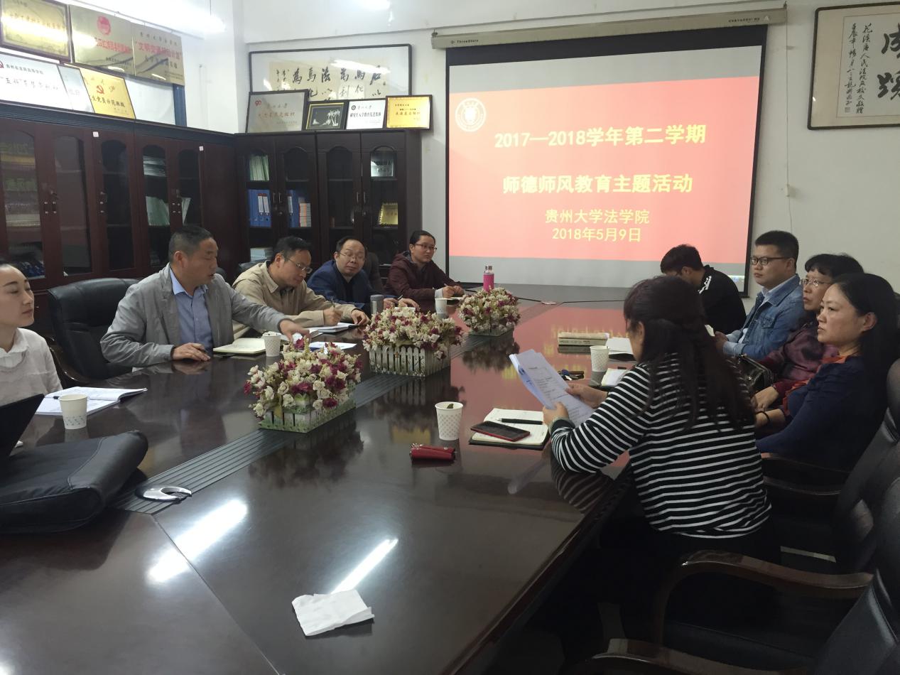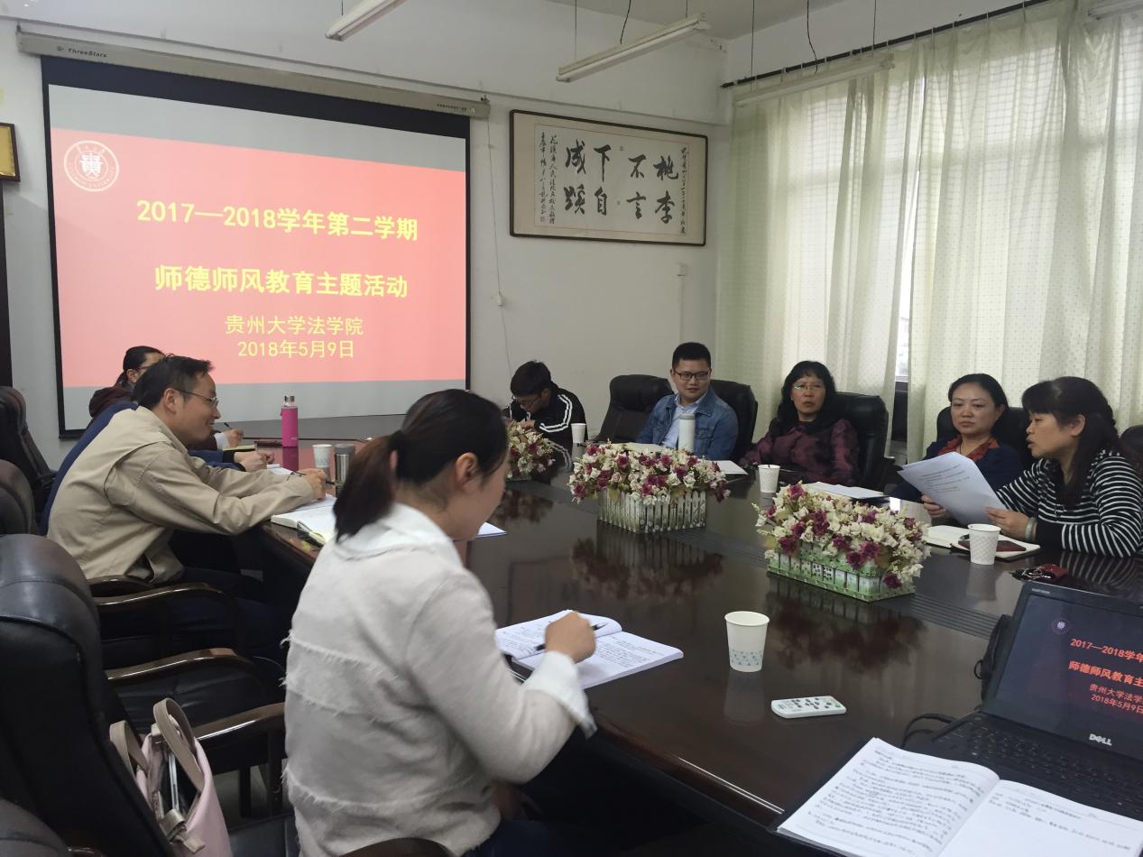 2018年5月9日,金沙集团1862cc成色在会议室举行了2017-2018学年第二学期师德师风教育主题活动,我院副院长宁立标教授、党委副书记洪影秋、教学科研科陆万莲科长、杨智婷老师及肖艳红老师、曹波老师、龚微老师、李卫国老师、李丹阳老师等参加了本次会议。本次会议由副院长宁立标教授主持。
