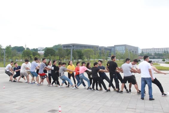 上午8时许,参赛人员被随机分为两队进行拔河比赛,获胜方取得10分钟的优先出发时间,拔河比赛后再随机以六人一组的形式进行接下来的素质拓展活动。两队喊着嘹亮的口号,心往一处想,劲儿往一处使,力求取得开场的胜利。激烈的拔河比赛点燃了全场的热情,为接下来的活动开了一个好头。