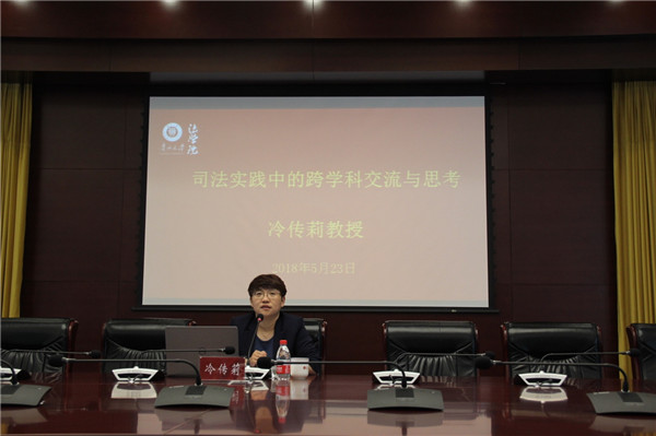 随后,冷传莉院长以司法实践中跨学科交流与思考为题为大家授课,她指出,中国法学教育普遍存在着结构性问题,