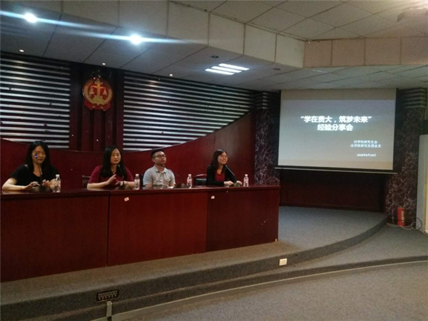此次分享会的开展,旨在通过优秀毕业生的经验交流,让在校生了解博士生考试、公务员考试、国企考试以及律师等私企求职中的必要知识和成功技巧,解除困惑,树立好学求知的信念,从而让自己在接下来的学习生涯中确立明确的目标,为将来的工作和生活打下良好的基础。