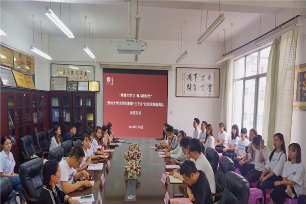 为深入贯彻落实党的十九大精神,助力脱贫攻坚,贵州大学法院结合实际,发挥学科优势,组织同学们参与暑期“三下乡”社会实践活动,为法治助力脱贫做出了法学学生应有的贡献。