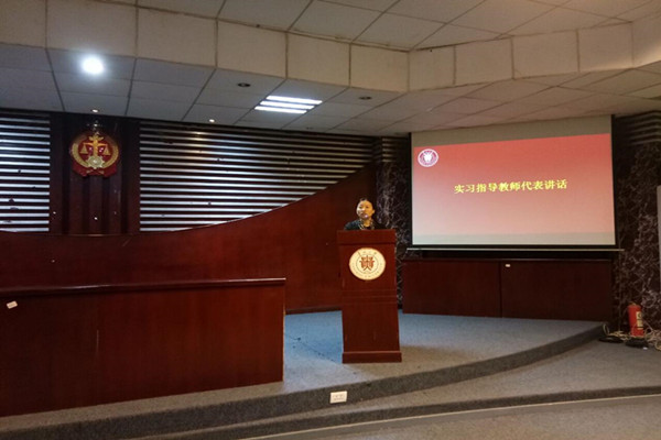 大会议程第二项由实习指导教师代表田应梅讲话,田老师特别强调了实习期间的纪律、安全、注意事项方面的问题,向2015级学生提出了具体要求,希望大家提高安全防范意识,加强与指导老师、单位老师的沟通与联系;严格遵守实习单位的纪律,遵守各项规章制度;认真实习,勇于践行,做到“腿勤、脚勤、脑勤”,多加反思和总结,切实提高自己的工作能力。
