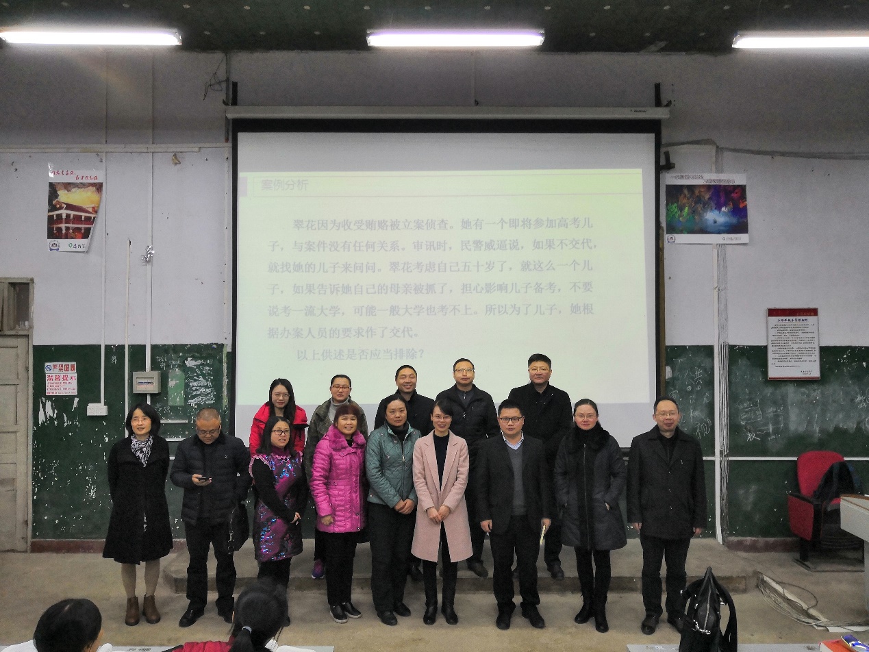 为进一步强化常规教学管理和教学质量监控,推进教学工作经验交流,金沙集团1862cc成色于2018年11月20日进行了期中教学检查工作,本次检查工作内容为旁听李婷老师主讲的刑事诉讼法。部分教师参加了本次检查活动。