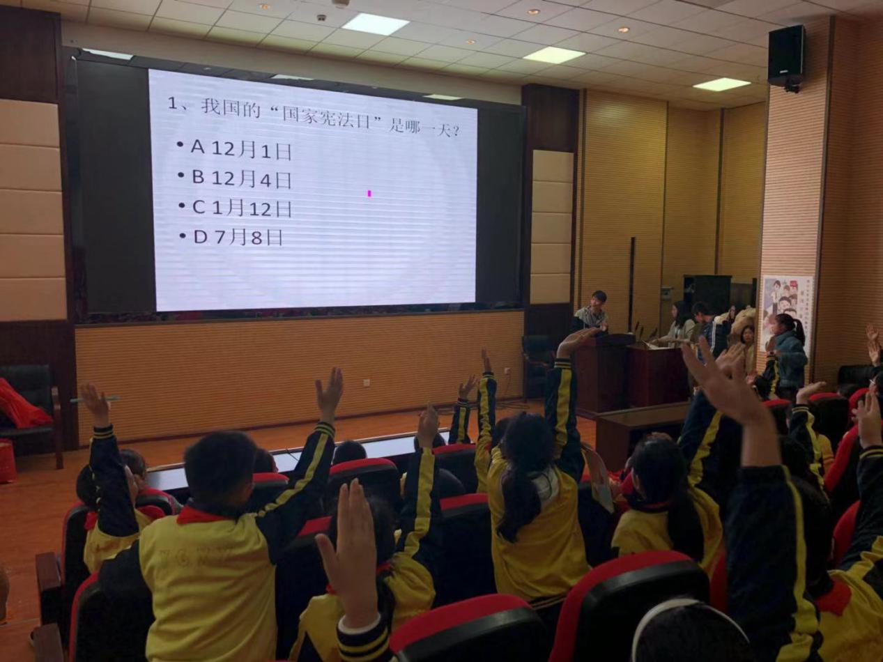 志愿者们从同学们的校园活动以及日常生活切入,通过竞答题目与在场的同学们进行互动,主要涉及同学们的身边事,让他们更加深刻的理解“未成年人健康成长”、“防范未成年人犯罪的机制”、“家长、学校和社会对未成年人的教育职责”等方面的法律知识,巧妙的问答设计充分调动在场同学的积极性,小朋友们积极举手,踊跃发言,志愿者们耐心的为他们答疑解惑,现场气氛活跃,掌声阵阵。