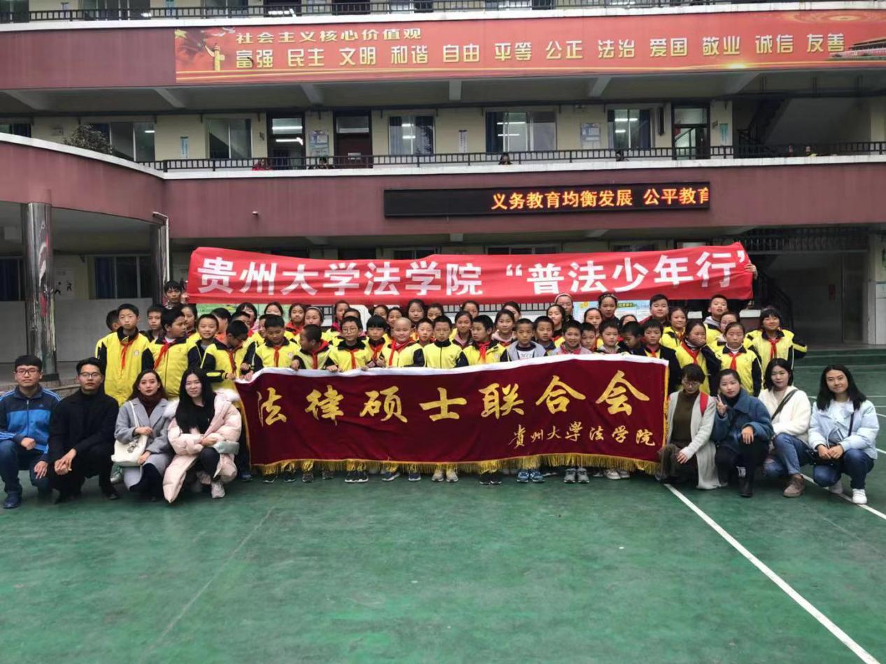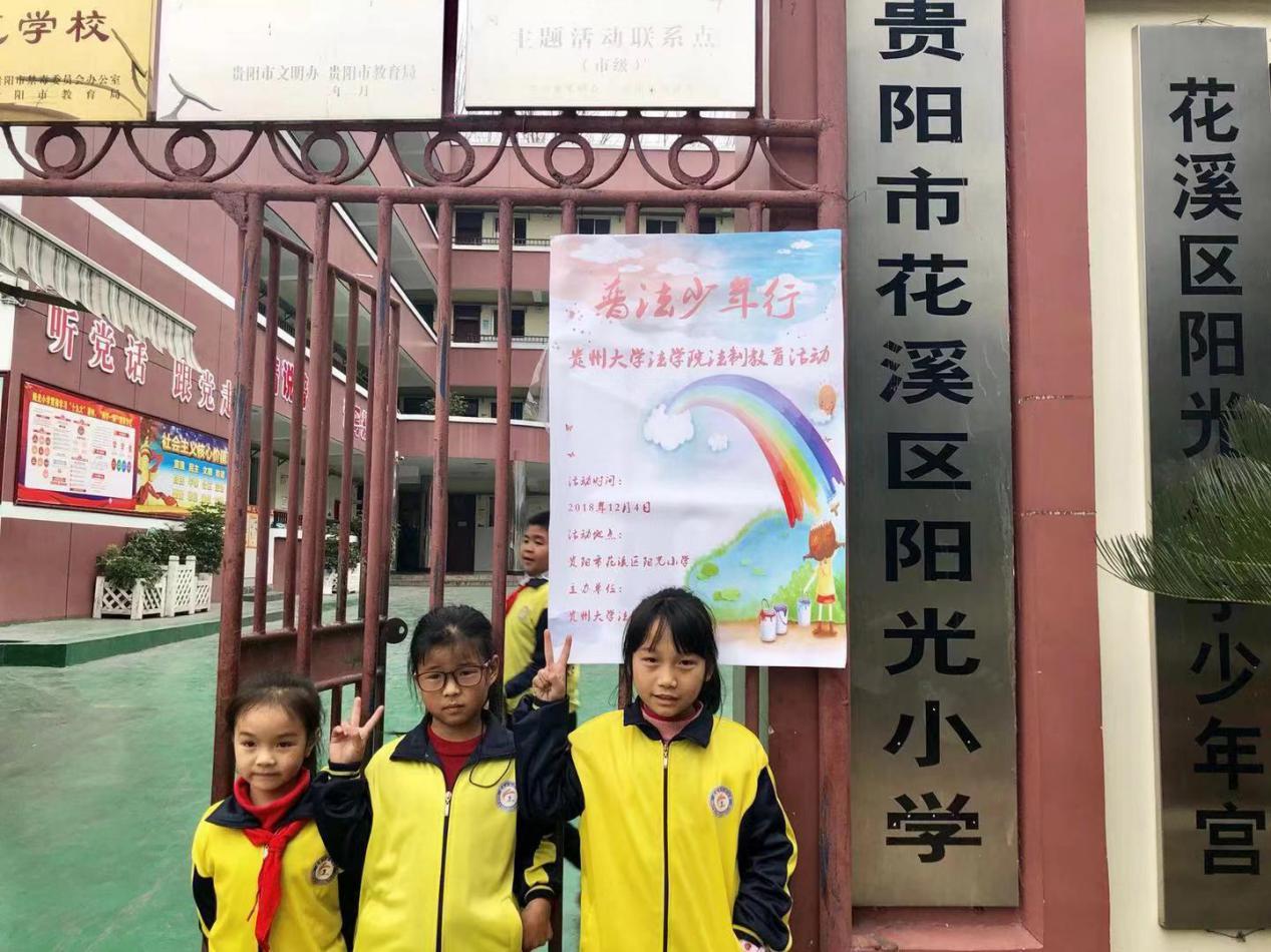 2018年12月4日下午14:30,第三期金沙集团1862cc成色“普法少年行”法治教育活动在贵阳市花溪区阳光小学举行。此次活动由贵州大学法硕联合会举办。到场的嘉宾有花溪区教育局体卫艺法规安全科刘丽女士以及阳光小学思教主任杨丽萍老师。参加活动的有阳光小学同学们以及法硕联合会的志愿者们。