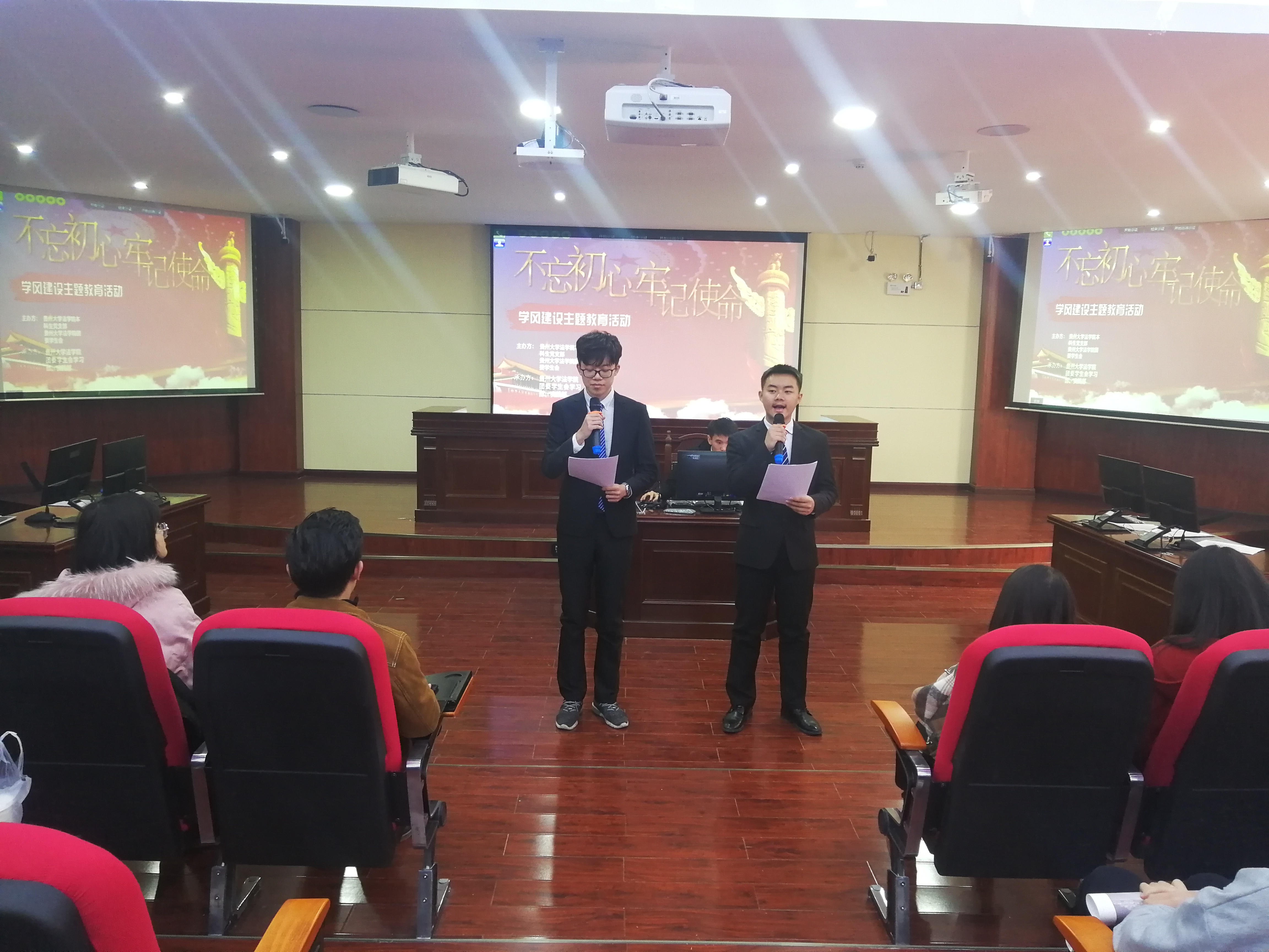 为加强学生对党的科学理论知识学习,深化意识形态教育,增强集体荣誉感和责任心,12月7日下午,我院本科党支部、团委学生学会生联合组织的“不忘初心、牢记使命”之“建优良学风,育文明之气”活动于模拟法庭召开,我院本科生党支部副书记、团委学生会负责人王冰老师出席此次活动。本科生党支部党员、发展对象、团委学生会学生干部以及各班学生代表参加了本次活动。
