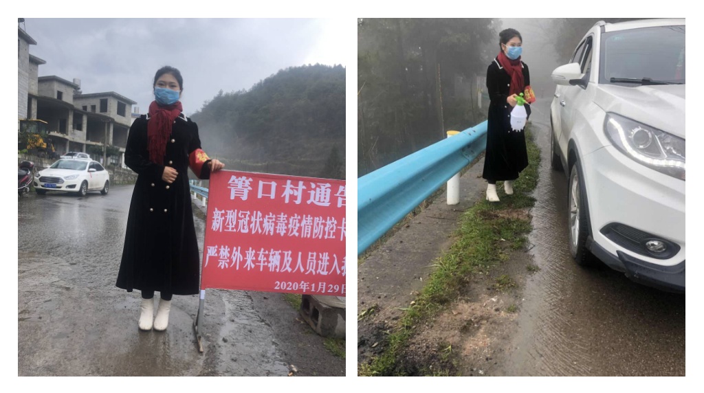 刘娇艳同学参与了贵州省坪地乡箐口村小石丫口群众参与疫情防控封村卡点值班工作,进行了对出入人员进行劝阻和对出入车辆进行消毒等工作。“巾帼不让须眉”,刘娇艳知道防疫工作的艰苦,却认为“作为年轻的大学生,作为团员,我应责无旁贷加入这场战争”。