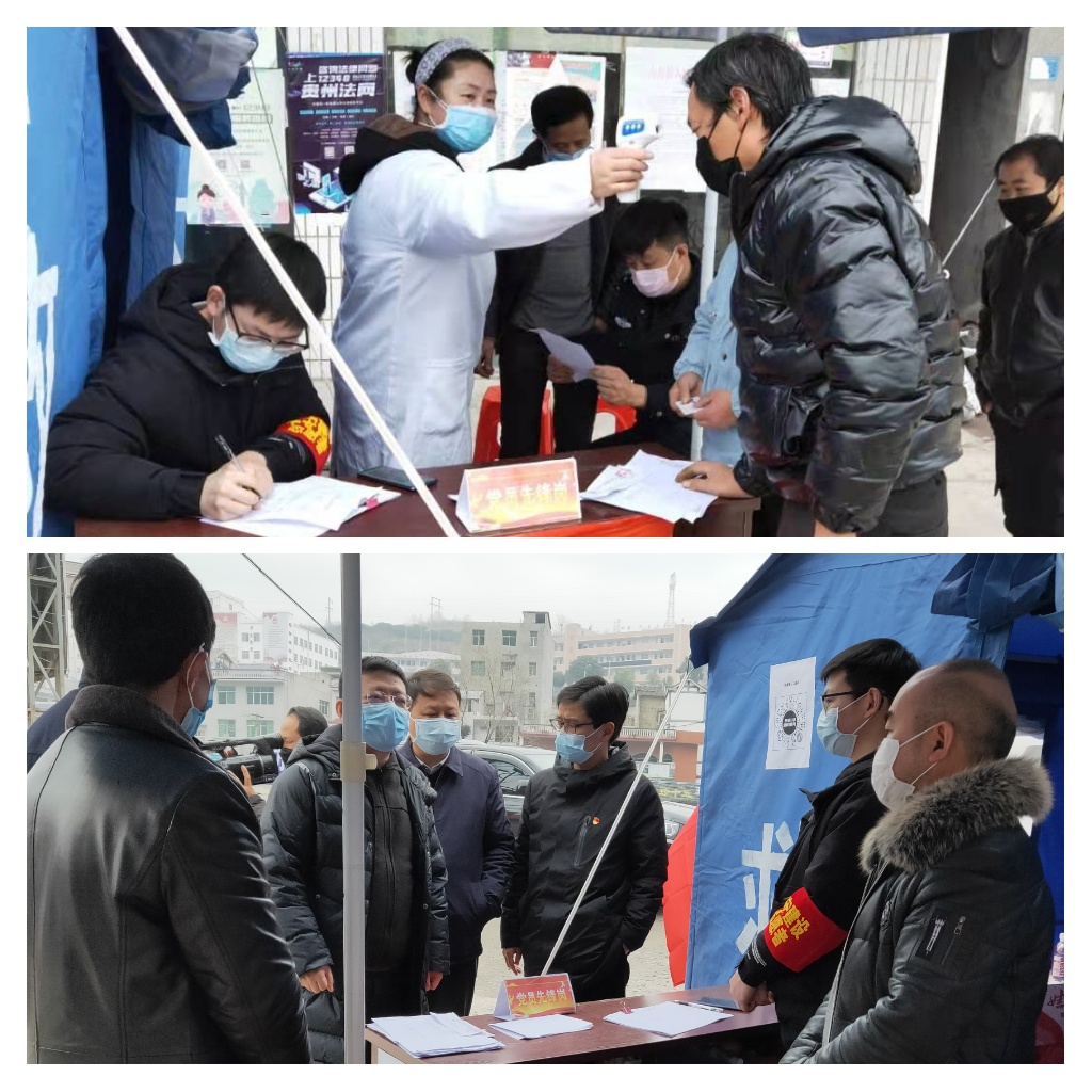(志愿者罗坤林在党员先锋岗上与各村干部、卫生员、村警等人在多村主要交通干道进行进出入人员登记)
