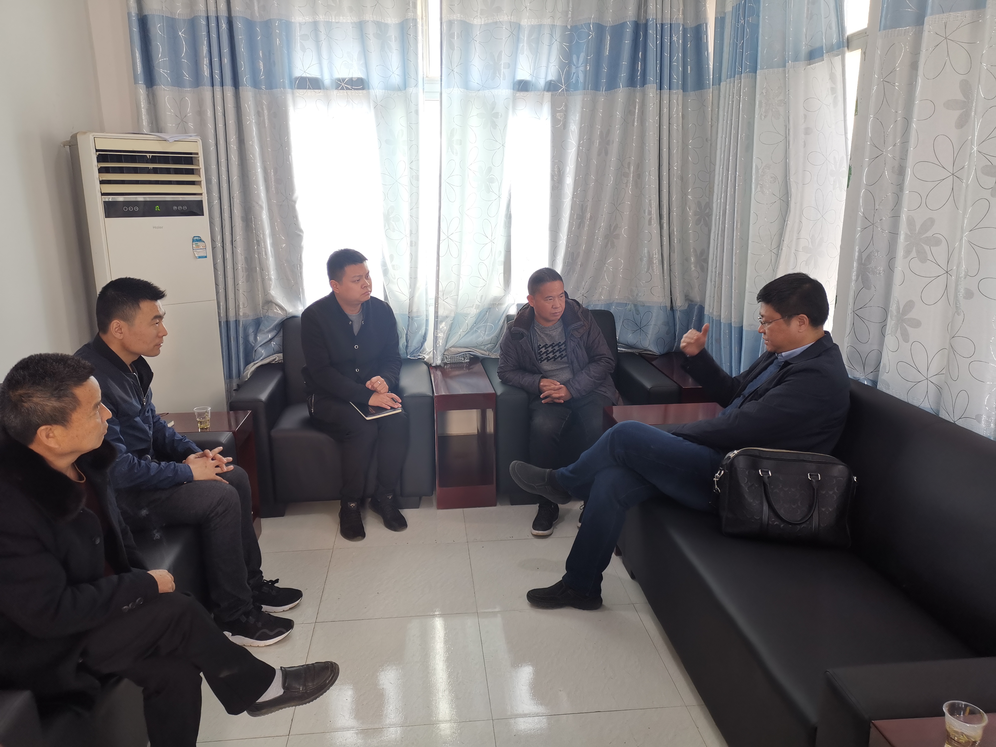 当天中午,胡小兵书记一行来到小屯镇政府,与皮俊镇长、镇党委副书记、政法委书记卢玉杰、副镇长吴德顺等镇领导开展座谈。皮俊镇长全面介绍了该镇当前脱贫攻坚工作中面临的困难和问题,以及下一步工作安排、打算,并提出希望我院、茶学院帮助解决的有关事项。胡小兵书记回顾总结了2019年学院帮扶小屯镇有关工作以及取得的成效,并对落实学校提出的2020年继续帮扶小屯镇脱贫攻坚工作谈了想法和打算。他说,学院将继续整合资源,发挥教育扶贫优势,按照学校要求,结合小屯镇现阶段脱贫攻坚实际情况和需求,继续加大工作力度,帮助小屯镇巩固脱贫成效,助力该镇最后发力冲刺,实现全面建成小康。双方对下一步具体帮扶活动达成了一致意见。