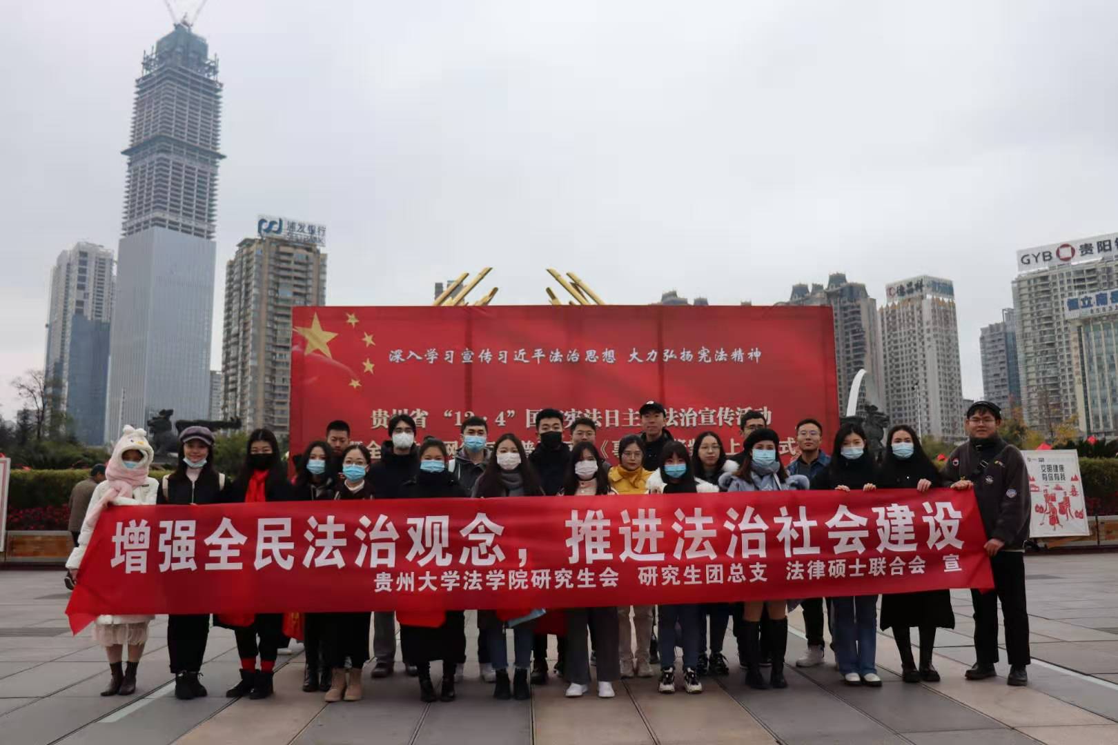 2020年12月4日是我国第七个国家宪法日。为深入学习宣传习近平法治思想,大力弘扬宪法精神,增强公民宪法意识,12月4日上午9时30分,金沙集团1862cc成色研究生会、研究生团总支、法律硕士联合会的研究生志愿者积极参加由贵州省委宣传部、贵州省司法厅和贵州省法宣办主办的贵州省“12·4”国家宪法日主题法治宣传活动。