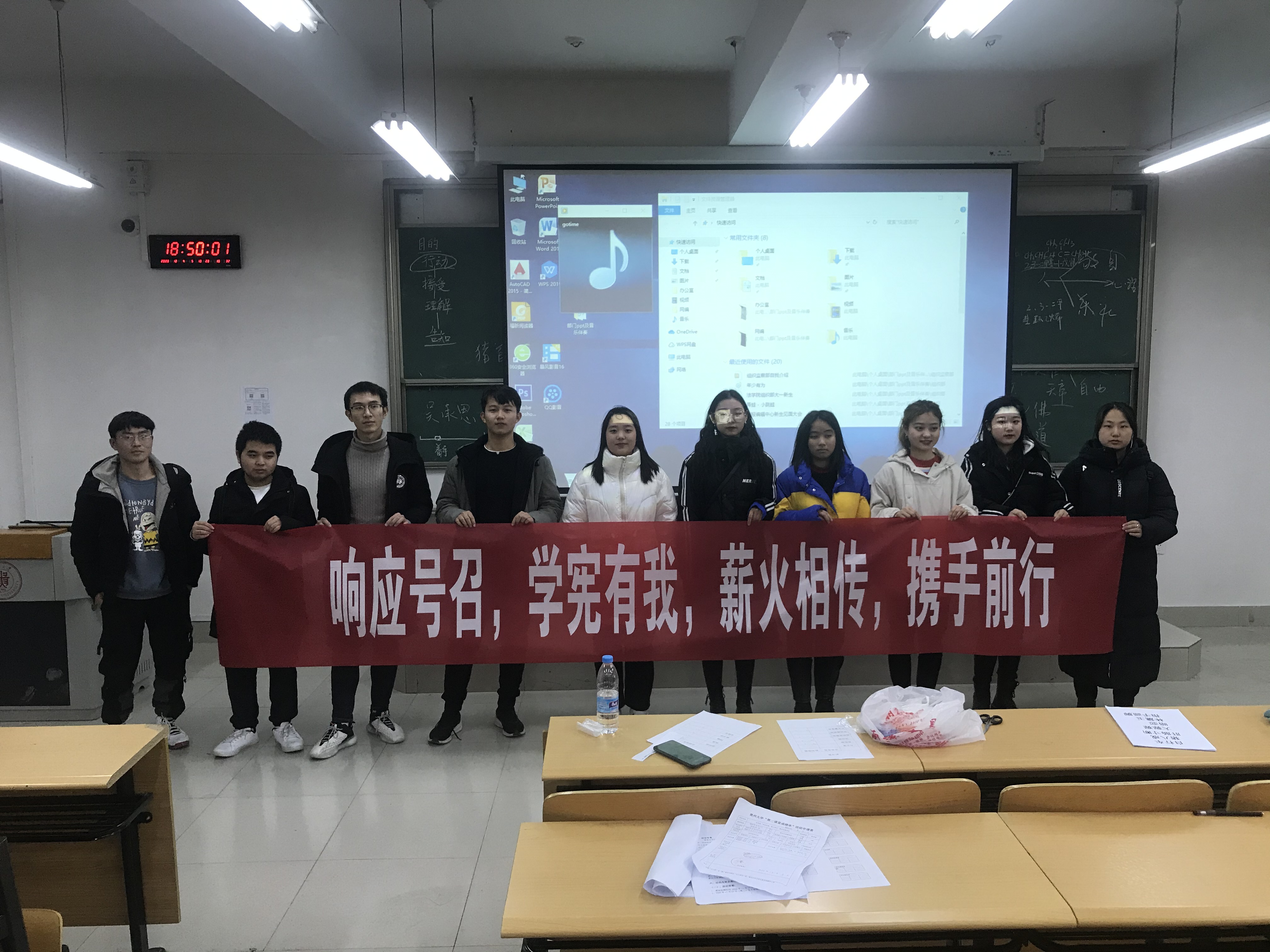为了进一步促进各年级之间的交流,我院团委、学生会于12月4日下午4点在南校区致知楼204教室开展了以“响应号召,学宪有我,薪火相传,携手前行”为主题的素拓活动。本次活动在轻松、愉快的氛围中进行,为提高学生素质、增进学生感情起到了积极作用。