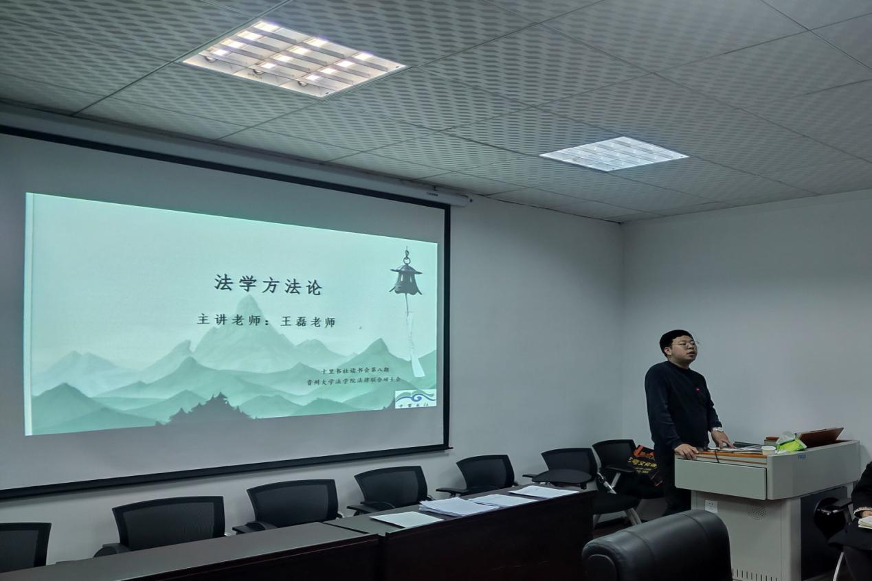 由法律硕士教育中心主办,法律硕士联合会拓展部承办的“十里书社”第八期读书会于2020年12月10日晚19:00在我院第二会议室顺利召开。此次鉴赏的书籍是由王磊老师推荐的杨仁寿所著《法学方法论》。王磊老师毕业于南京大学,法学博士,研究方向为民法学,已发表《完全赔偿原则与侵权损害赔偿之反思与构筑》、《论法价值的衡量》、《论重大误解的价值补充纲要》等多篇学术论文。