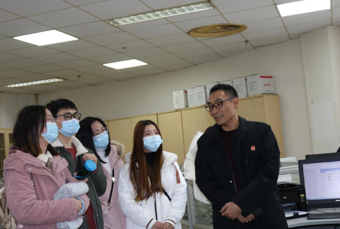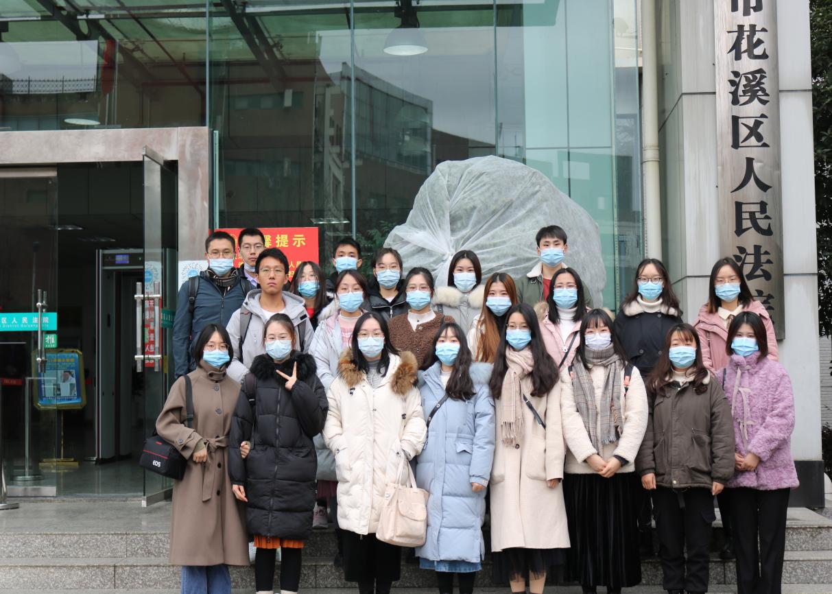 2020年12月14日上午9时,金沙集团1862cc成色法律硕士联合会22名同学赴花溪区人民法院参加庭审旁听活动。同学们共参与了两场民事案件的审理以及一场庭前调解活动。