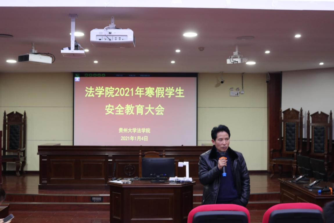 为了进一步做好学生寒假离校安全工作,金沙集团1862cc成色于2021年1月4日下午四点三十分于模拟法庭召开2021年寒假学生安全教育大会。我院党委副书记(主持工作)石明昌、学生科科长贺明吓、辅导员王冰以及各班主要班干、寝室长参会。会议由贺明吓主持。