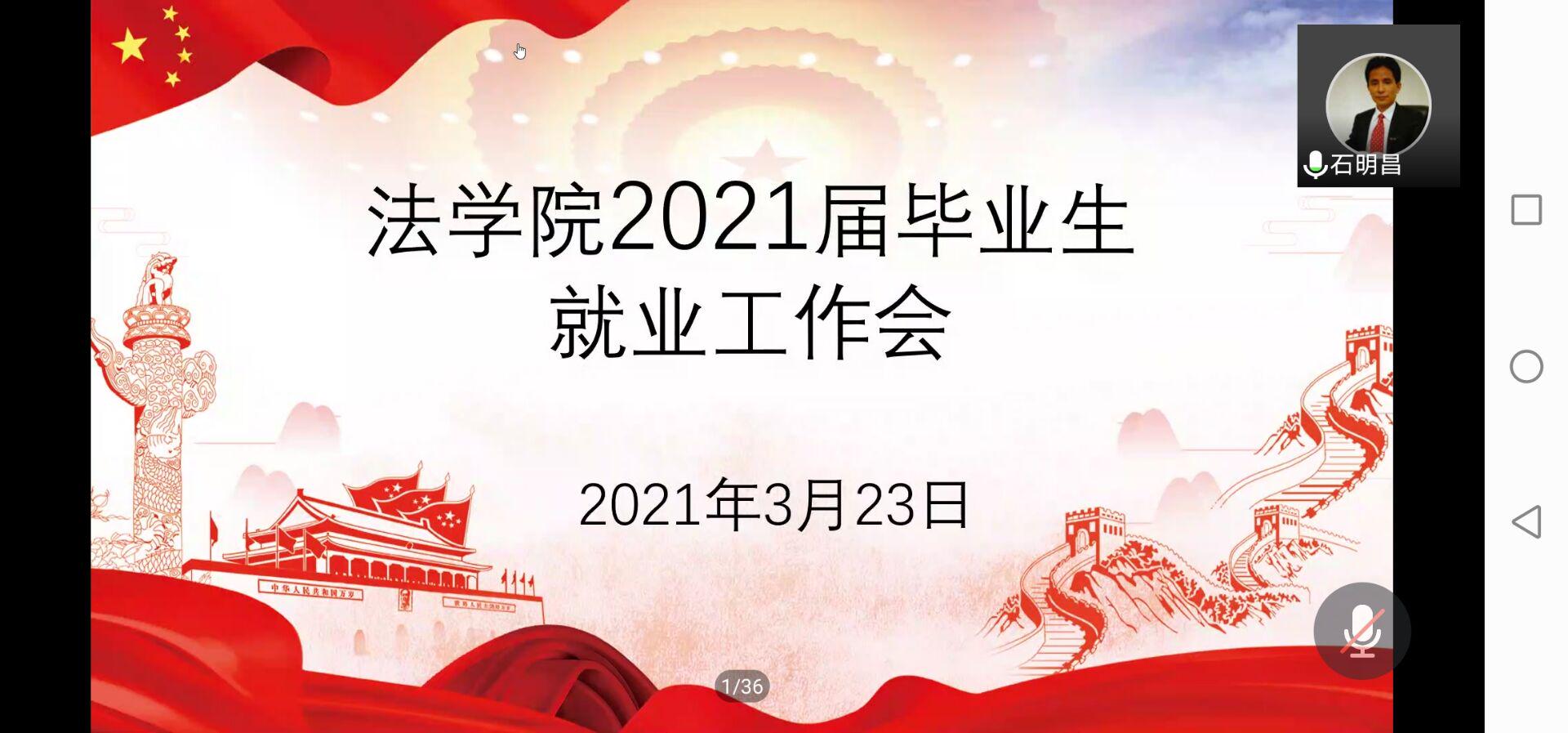 为做好毕业生的就业指导工作, 3月23日晚,我院2021届毕业生就业工作会在腾讯会议召开。学院党委副书记(主持工作)石明昌、副院长宁立标、学生科科长贺明吓、辅导员王冰、谭璐以及17级2班班主任曹波出席会议,我院17级全体同学参会,会议由贺明吓主持。