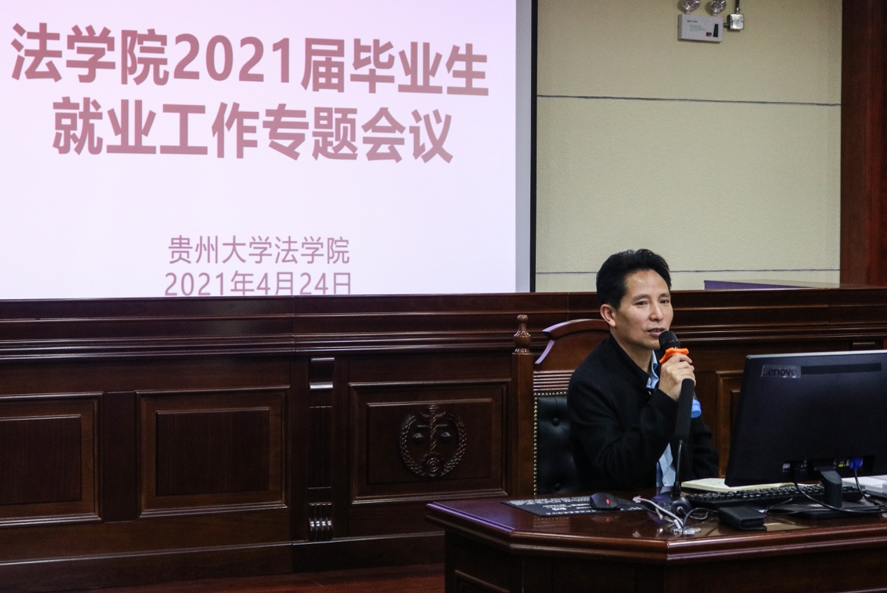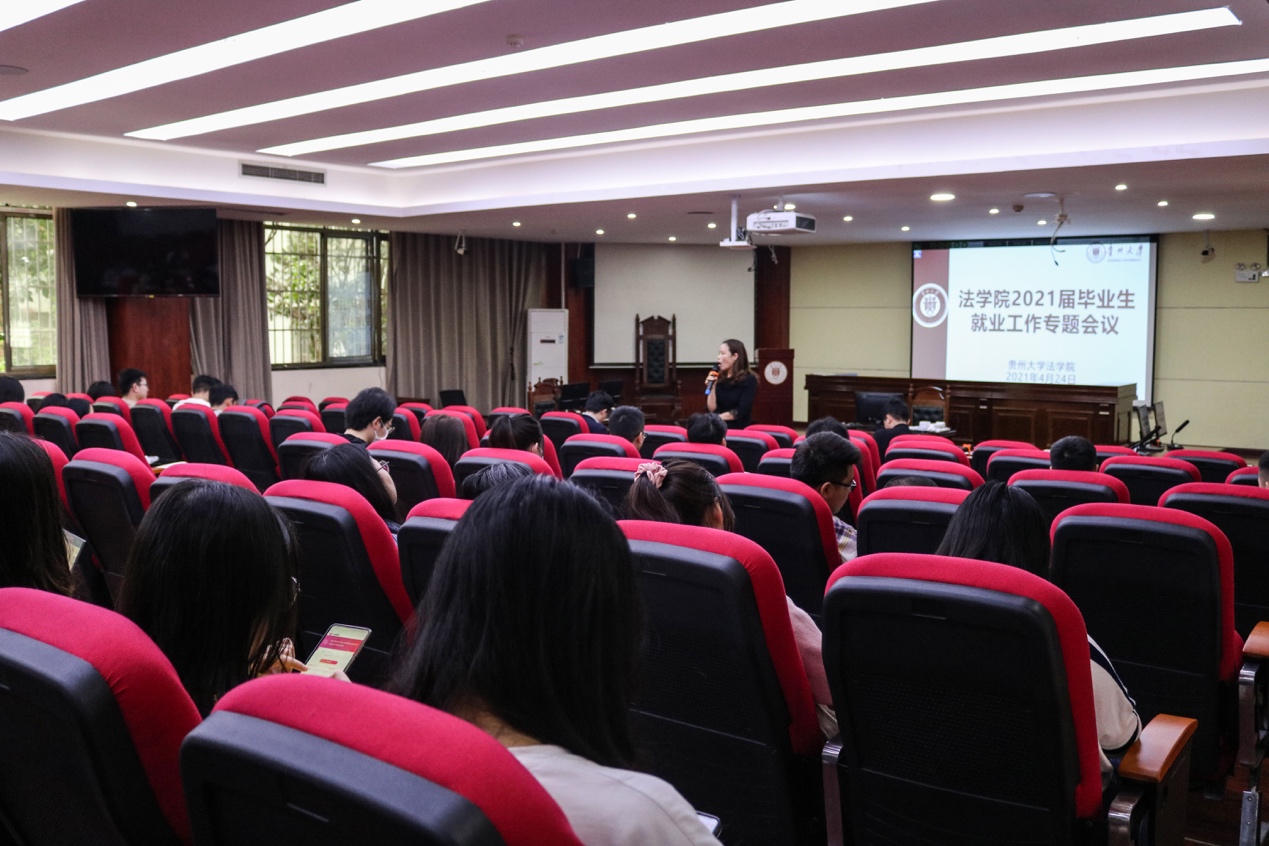 为了更好的推进毕业生就业工作,金沙集团1862cc成色于4月24日上午在慎思楼模拟法庭召开2021届毕业生就业工作专题会议,学院党委副书记(主持工作)石明昌、学生科科长贺明吓、辅导员王冰、谭璐出席会议,2021届毕业生代表参加会议。