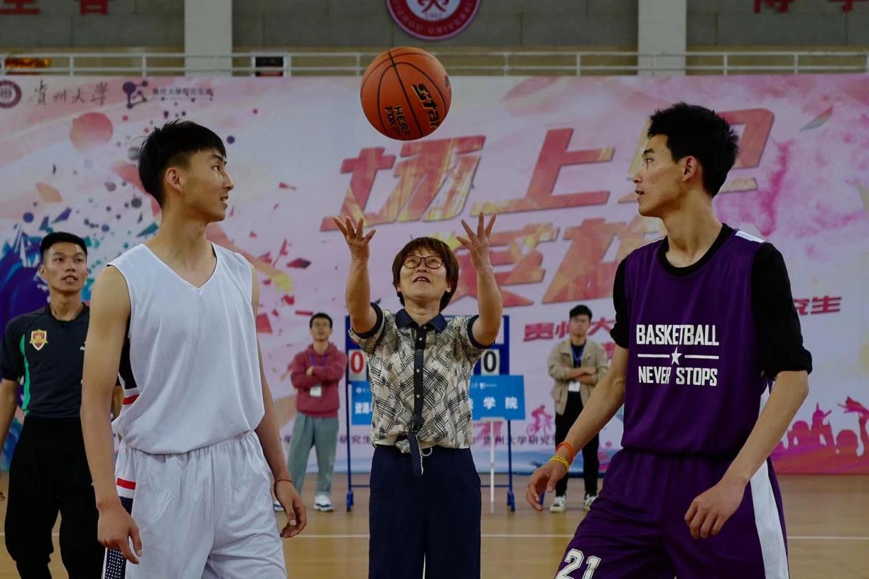5月21日,“博学杯”男篮决赛在东校区体育馆举行,我院对阵资环学院,贵州大学党委副书记令狐彩桃为球赛开球,现场千余名观众为两支队伍呐喊助威。