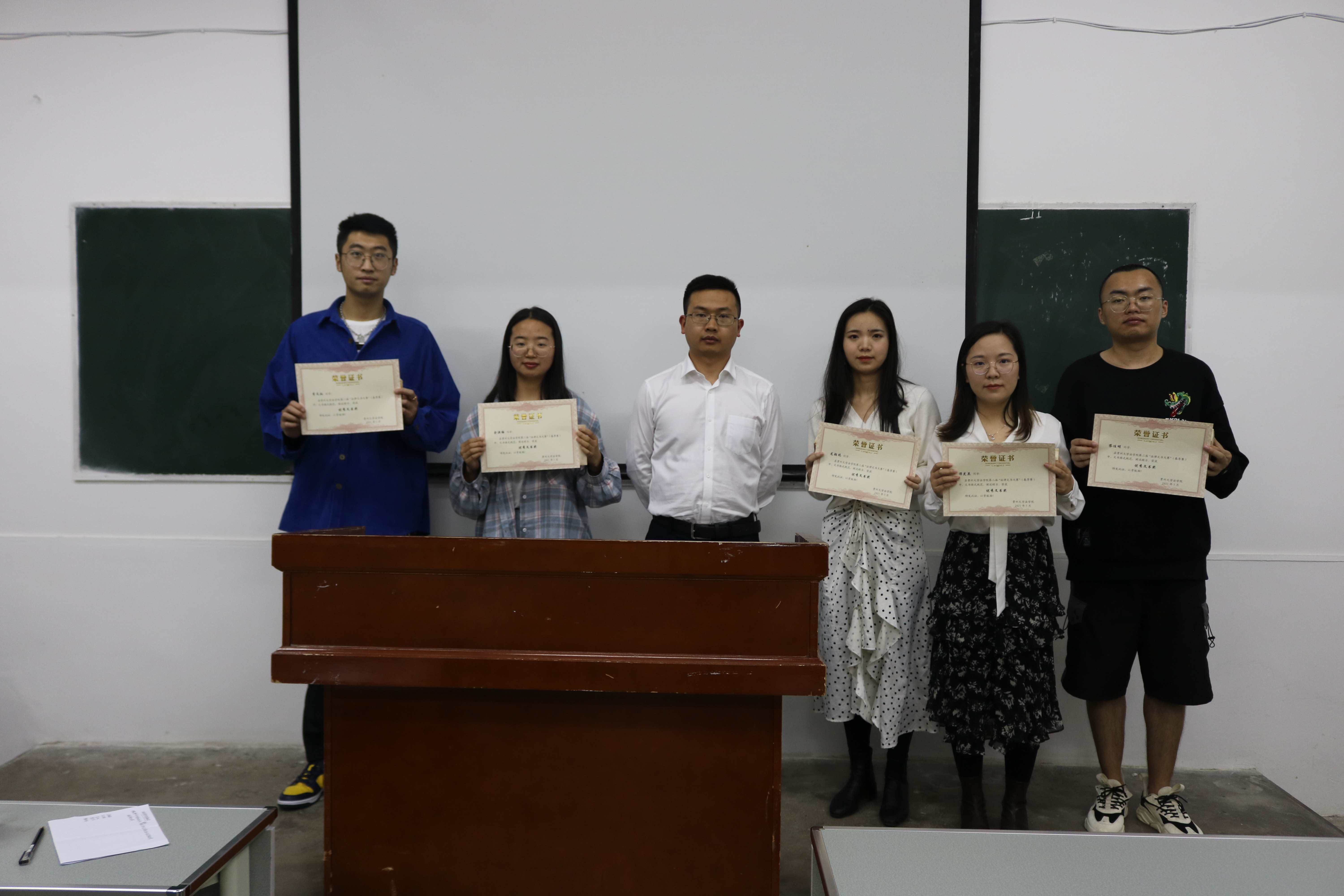 本届法律文书大赛(春季赛)共评出5份优秀法律文书获得者,分别是20 级法律(非法学)班的龙颖嫣同学、法律(法学)班的余洪梅、李文灿、谭芙英以及黎佳明同学,尚勇老师分别为他们颁发奖状并合影留念。