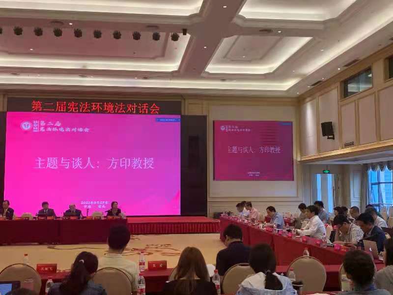 会议围绕绿色发展、环境权、环境法典三个议题,以主题发言和与谈交流相结合的方式展开了宪法学与环境法学之间的深刻对话。我院方印教授就与谈主题“环境法典的学术基础、政治关怀与实践尊重”发言,对环境法典必要的学术基础奠基、政治表达关怀及法治实践尊重发表自己的看法,认为环境法典不应定位于环境行政法而应定位于环境保护基本法与法律体系中综合法与领域法的地位。方印教授的发言受到与会者好评。