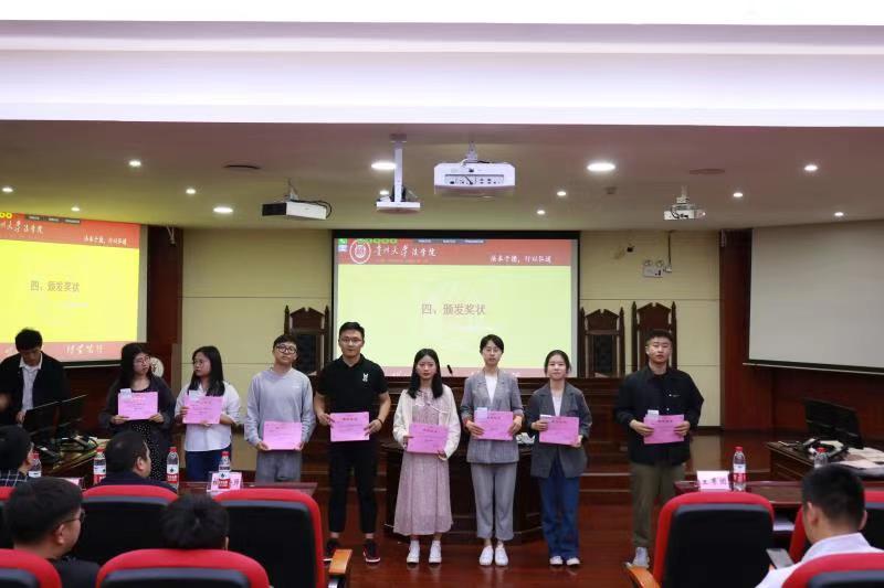 2021年6月3日,贵州大学法硕联合会全体成员在我院模拟法庭组织召开第十一届法硕联合会换届大会暨新老干部交流会。伴随着全体成员热烈的掌声,大会序幕徐徐拉开。