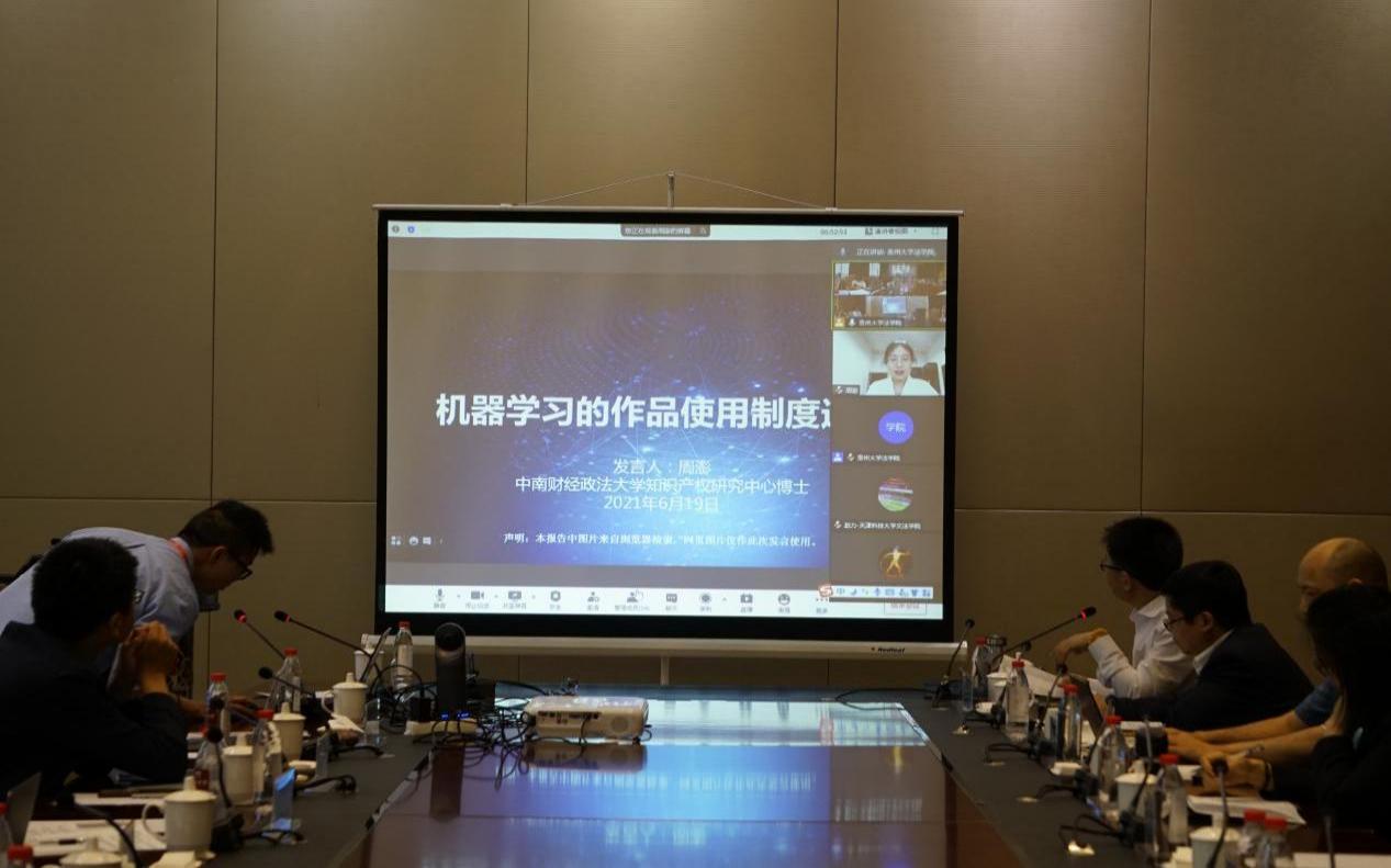 中南财经政法大学知识产权研究中心在读博士周澎以“机器学习的作品使用制度选择”为主题进行讨论。首先她分享了自己的研究历程,介绍了机器学习的作品使用问题;其次介绍了自己对作品使用的三种制度分析;随后论述了基于机器学习本质的作品使用制度选择;最后阐释了机器学习适用合理适用制度调适的论证过程。