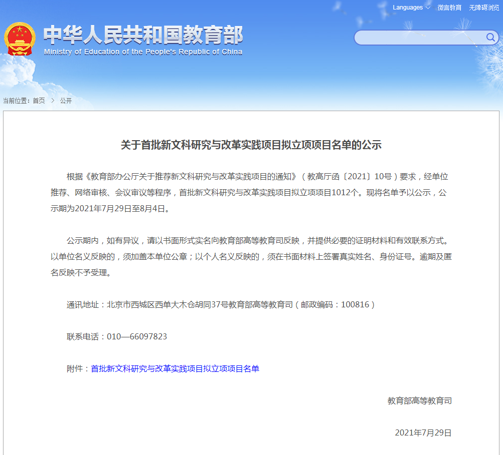 喜讯:我院项目获教育部首批新文科研究与改革实践项目立项