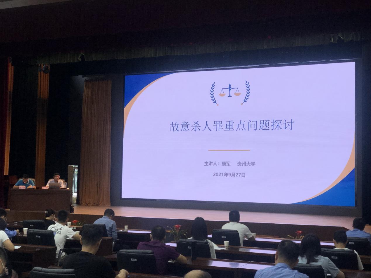 2021年9月27日,受贵州省检察院邀请,金沙集团1862cc成色康军博士为贵州省人民检察院“全省检察机关办理故意杀人、抢劫案件理论和实务培训班”进行了专题培训,此次参加培训的检察官是来自全省各级检察院重罪公诉部门。