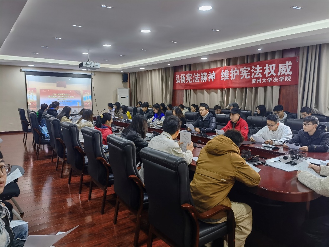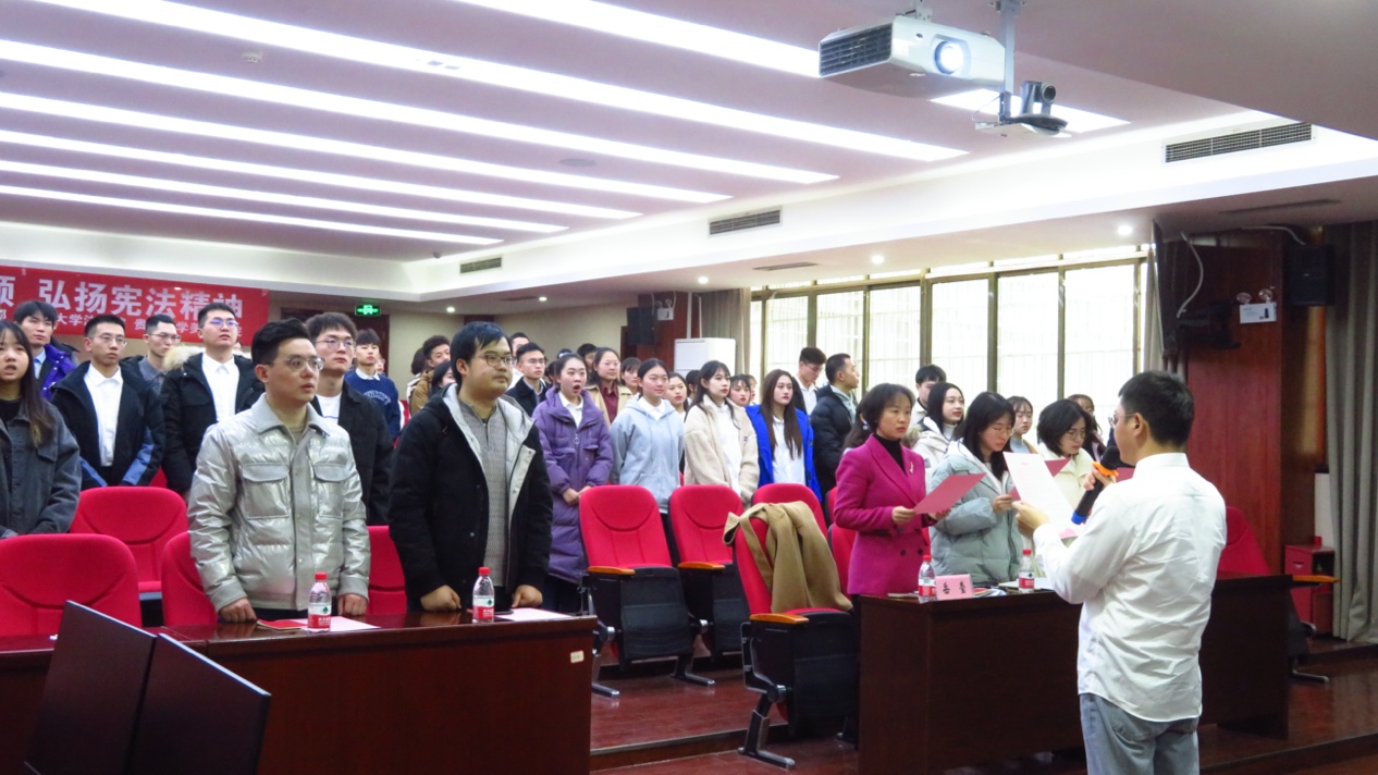 12月3日下午,由党委研究生工作部主办,我院、美术学院联合承办的“强化党建引领 弘扬宪法精神”学习宪法主题作品征集暨宪法宣讲进宿舍活动在东校区模拟法庭举办。