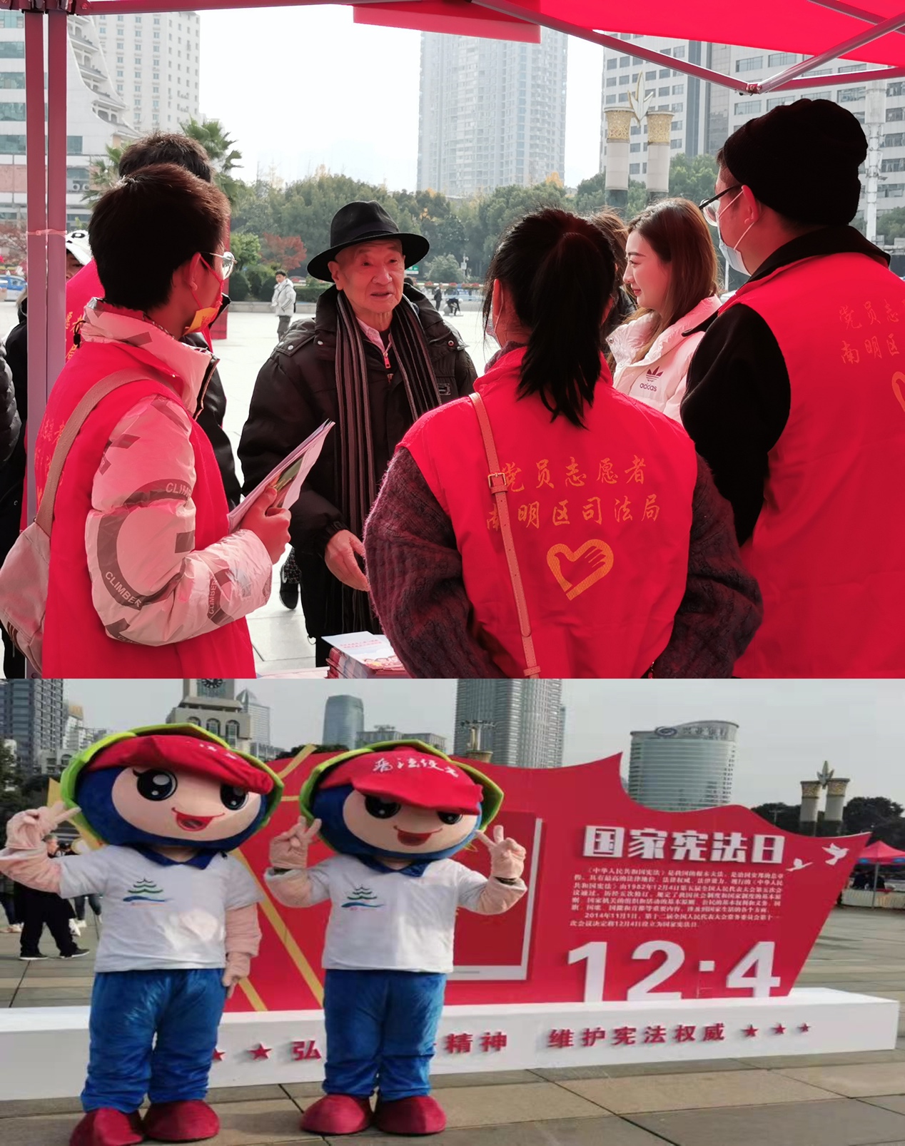 12月4日,我院研究生会、团总支、法硕联合会、新闻中心携手贵州省司法厅在贵阳市南明区筑城广场联合举办了“12.4”宪法宣传活动。