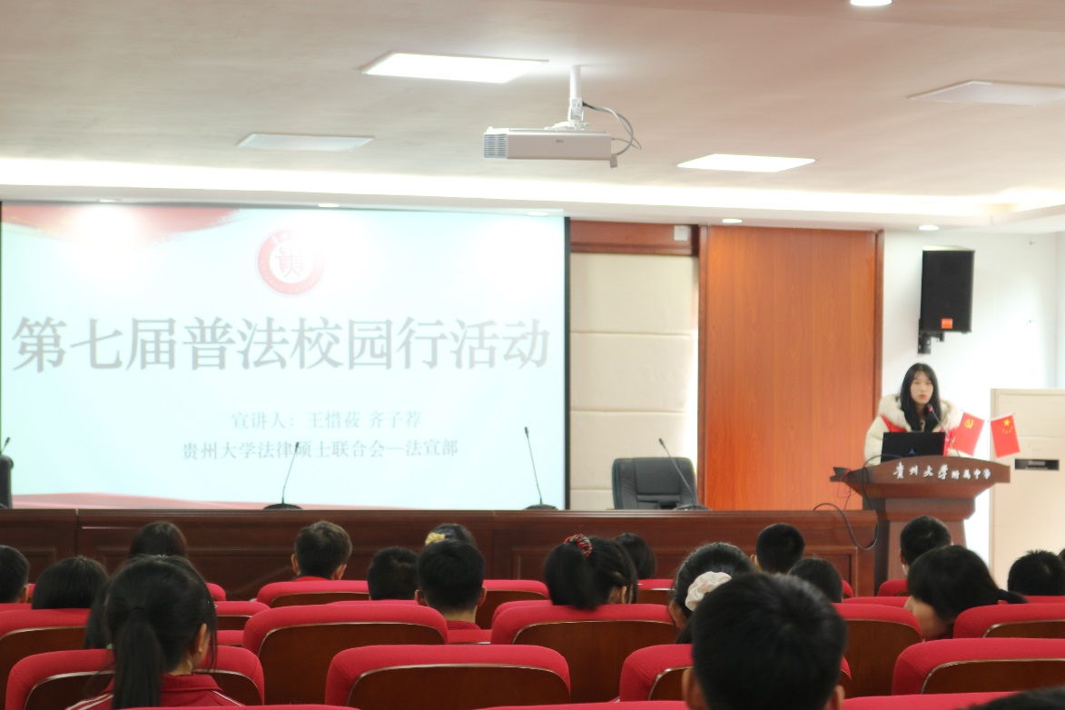 为了进一步提高青少年的法律意识,帮助青少年培养法律思维,倡导青少年学法、尊法、守法。12月6日下午4时许,由金沙集团1862cc成色法硕教育中心主办,法律硕士联合会法宣部承办的第七届“普法校园行”活动在贵州大学附属中学顺利举行。