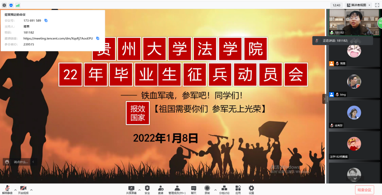 1月8日上午,我院于腾讯会议召开2018级年级大会,我院辅导员崔永霞、王冰、谭璐及2018级全体同学参加会议。