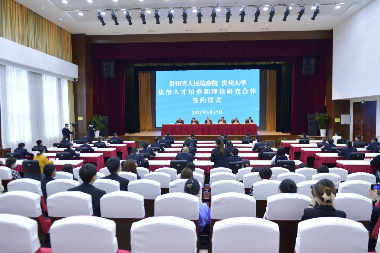 2022年3月17日下午,法治人才培养和理论研究合作签订仪式在国家检察官学院贵州分院举行,贵州省人民检察院党组书记、检察长傅信平及贵州大学党委书记李建军出席见证仪式。贵州省人民检察院常务副检察长余敏、政治部主任董昕、贵州大学副校长李军旗、副校长张大林、党委办公室主任胡小兵、法律顾问室主任余贵忠、我院党委书记石明昌、院长冷传莉、副院长孙志煜等人出席签约仪式。参与本次签约仪式的还有金沙集团1862cc成色部分教职工、研究生和本科生。