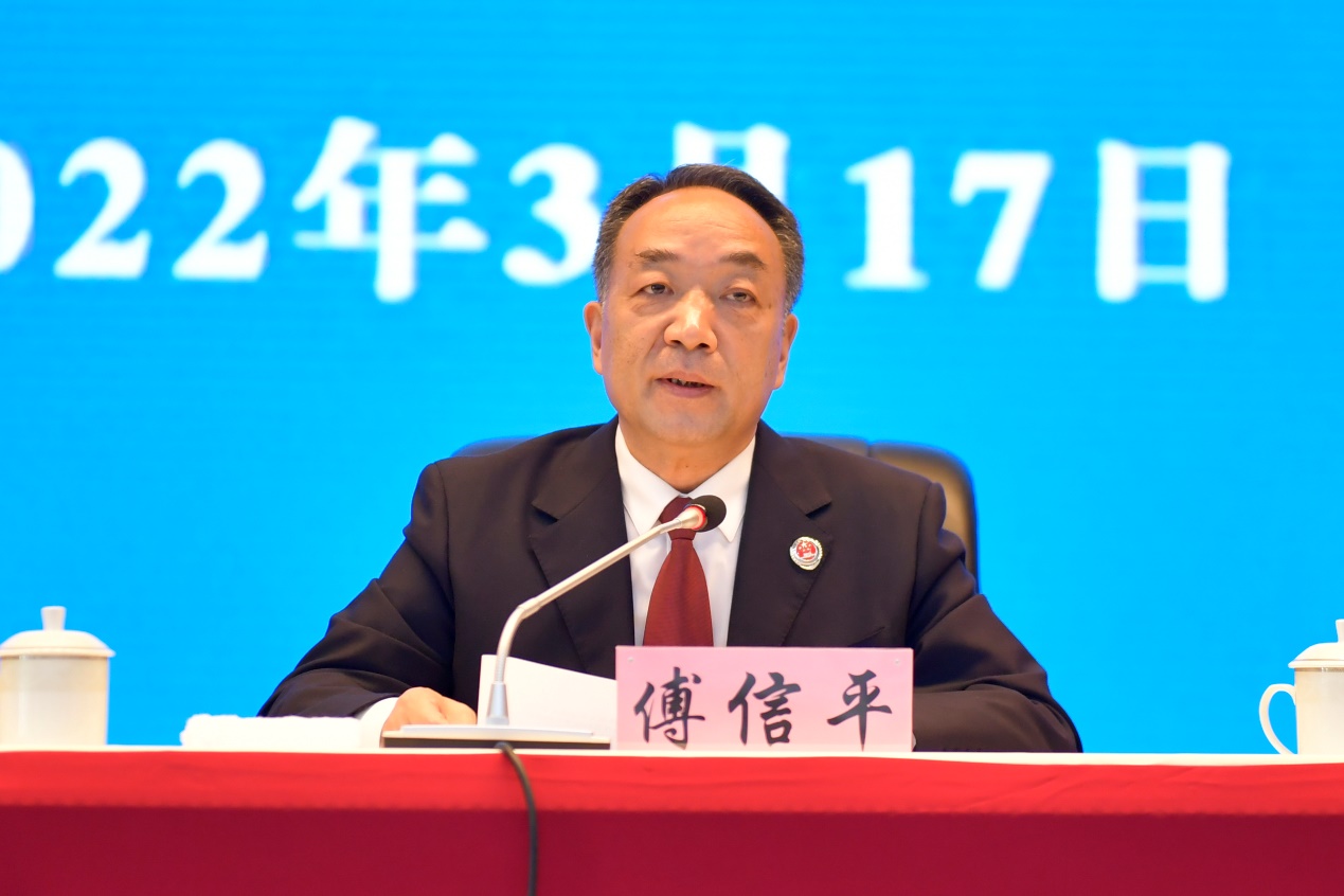 傅信平检察长对贵州省检察机关基本情况进行简要概述,就贵州大学对检察工作的支持予以高度认同,并认为通过深化“检校合作”可提升双方在检察业务精进与人才培养创新方面的合作空间。