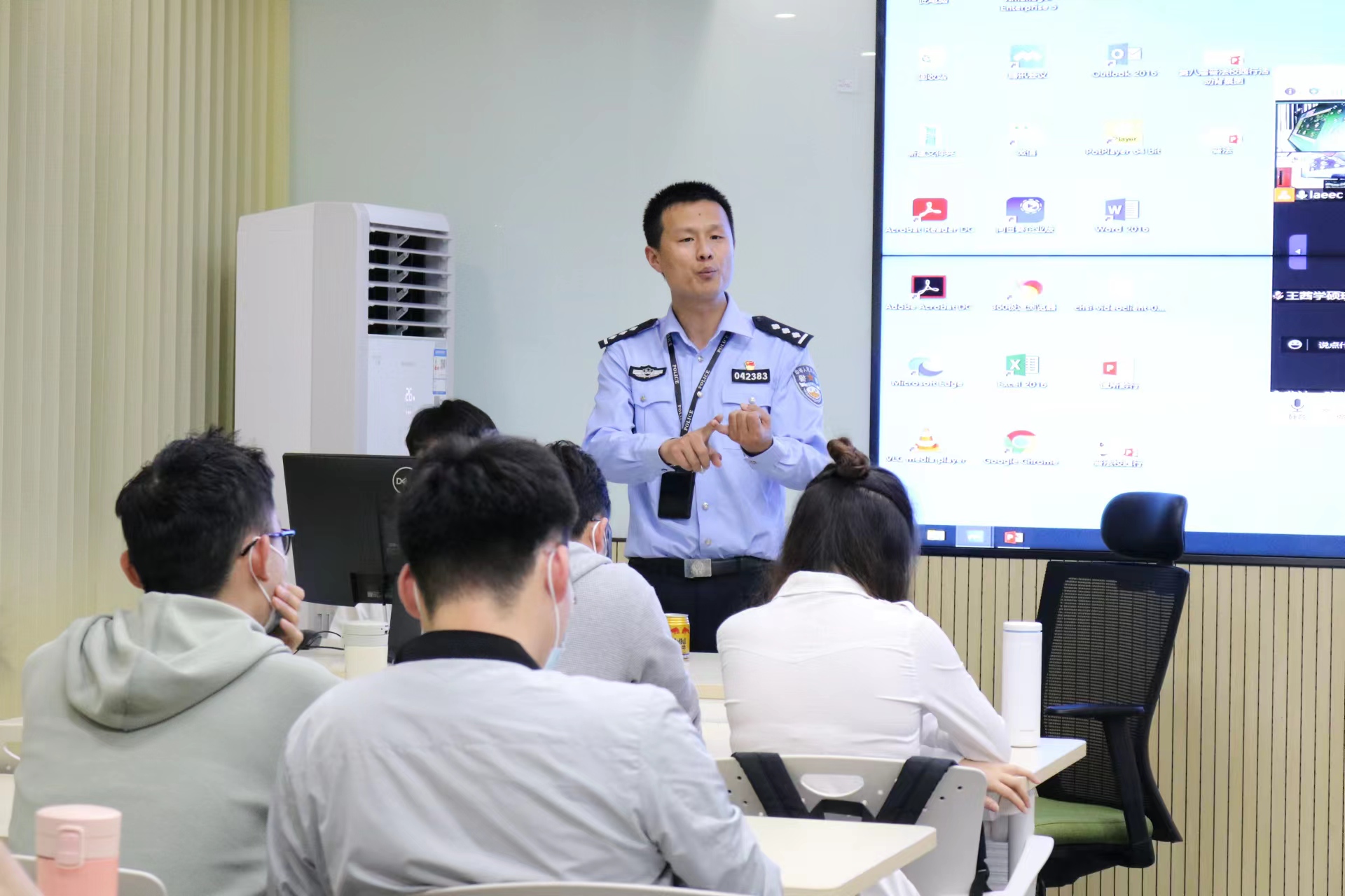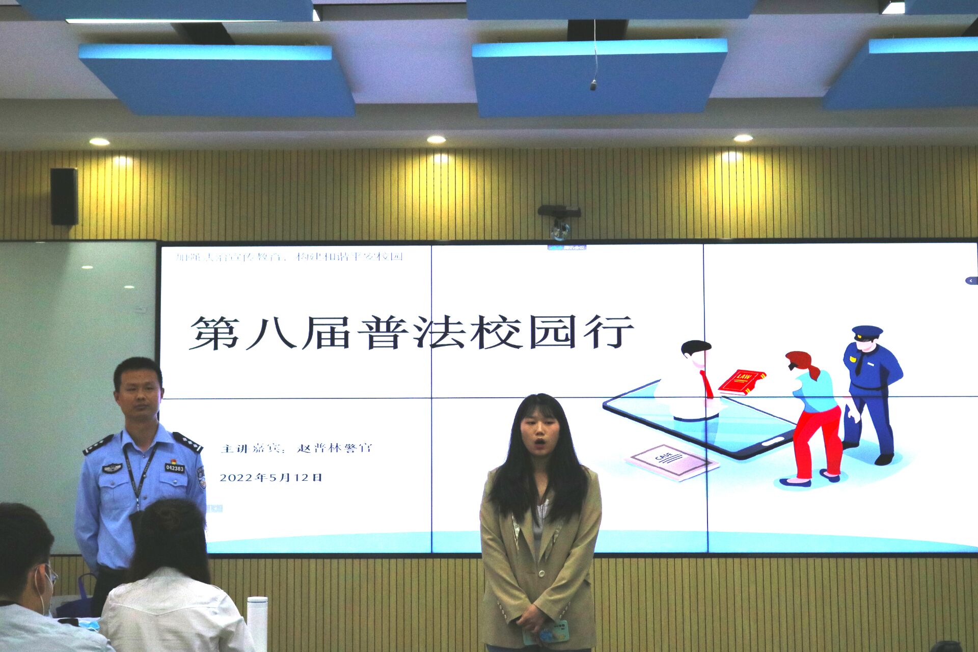 为了进一步提高我校大学生人身与财产保护意识,保障人身与财产不受侵害,营造一个更加良好的校园环境。2022年5月12日晚上19:00——21:00,由金沙集团1862cc成色法硕教育中心主办,法律硕士联合会法宣部承办的第八届“普法校园行”活动在逸夫楼423智慧教室顺利开展。本次普法活动邀请了贵阳市花溪区松山派出所赵普林警官到我院进行校园常发犯罪及公安视角下的犯罪实务讲解。此次活动采取线上(腾讯会议)与线下(智慧教室)相结合的形式,共计一百余名同学参加了本次普法活动。