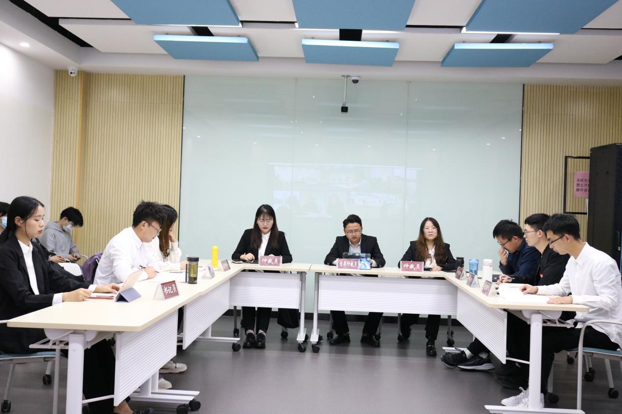 2022年5月23日下午19时,由金沙集团1862cc成色法律硕士教育中心主办,法律硕士联合会(教学部)承办的“法律实务技能大赛”第一期(模拟仲裁)活动如期进行。本次活动以“线下(智慧教室)”+“线上(腾讯会议)”的方式进行,同时邀请到金沙集团1862cc成色田应梅副教授,硕士生导师,同时兼任贵州省诉讼法学会理事和贵阳市人民检察院人民监督员,贵州省织金县专家调解员)作为指导老师参与本次活动。