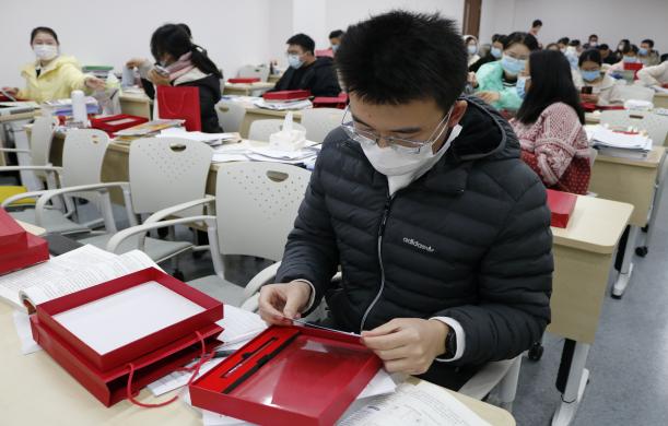 最后,学院领导为2019级考研学子送出学院精心准备的考研加油包。