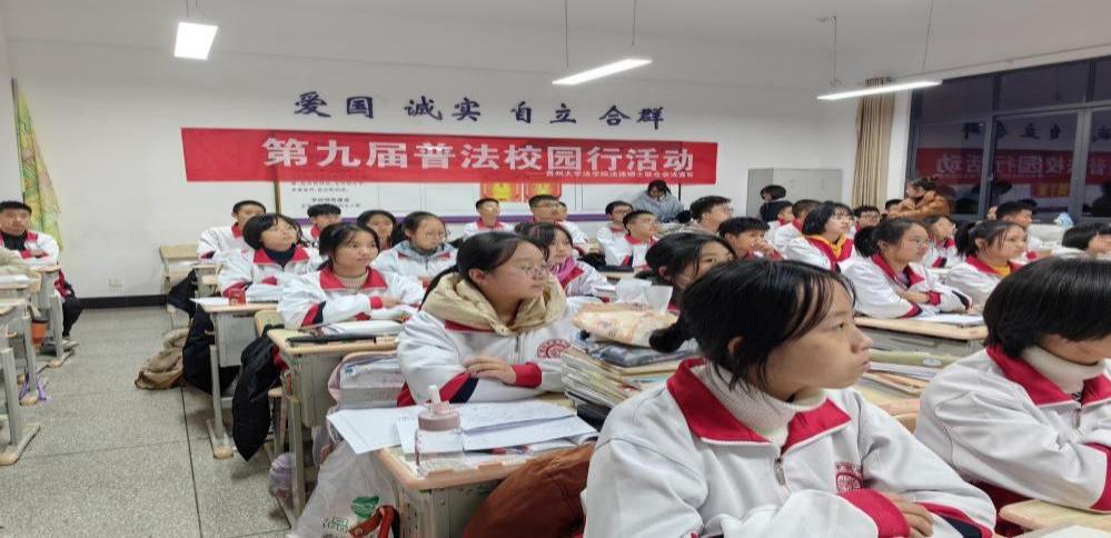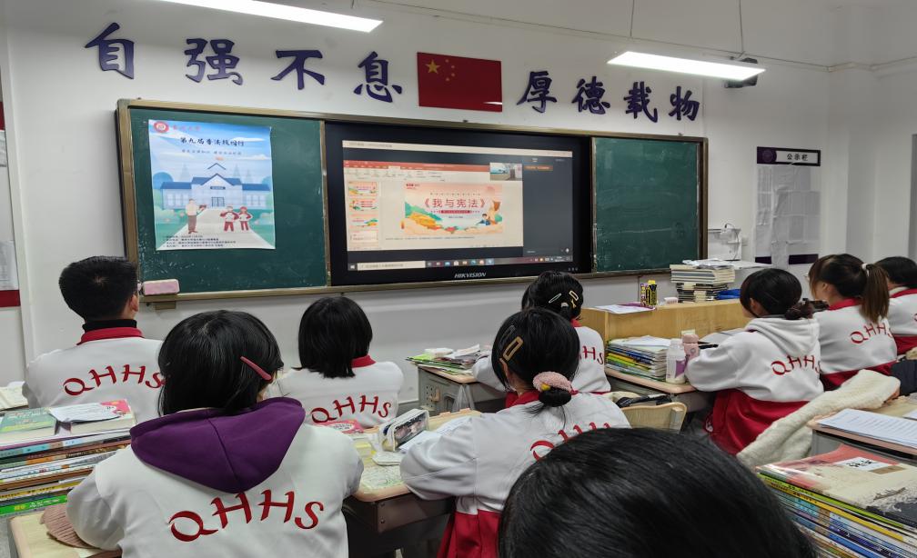 2022年12月4日晚上19:00,由金沙集团1862cc成色法硕教育中心主办,法律硕士联合会法宣部与贵阳市清华中学高一(2)班合作开展的第九届“宪法宣传暨普法进校园”活动,以课堂宣讲+网络直播的方式顺利举行。本次活动的宣讲人员为11月初我院举办的“普法课堂大比拼”活动中选出的四位优秀研究生讲师,他们分别为清华中华的同学们讲解宪法教育、校园安全、网络安全、疫情防控四部分法律知识。